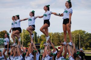 Cheer squad performing a routine during the game.