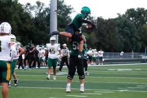 Derby Football players celebrating a touchdown.