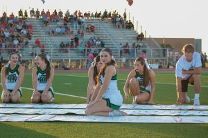 Cheerleader’s surround signs made for the players.