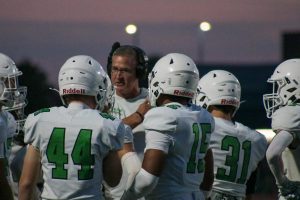 Coach hugs player.