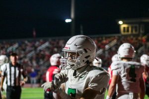 Football player celebrates after touch down.