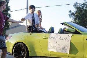 Seniors Cale Clingan and Ashlyn Zerger make their way down the parade.
