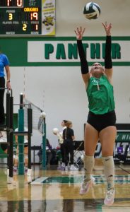 Volleyball player sets the ball.