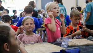 Ms. DeLange teaches Tanglewood’s Tigers about drill safety.Panther teaches Tanglewood Tiger how to drill into the woodTanglewood 3rd grade students partnering with Derby High panthersPanther teaches Tanglewood Tiger how to drill into the woodTanglewood 3rd grade students partnering with Derby High panthersPanther counts out how many wood squares are on each work stationPanther explains to Tanglewood tigers what to do nextTanglewood 3rd grade students partnering with Derby High panthersTanglewood 3rd grade students partnering with Derby High panthers