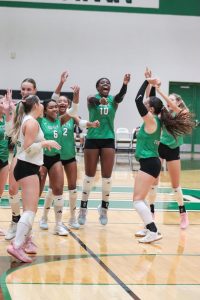 Junior Bryleigh Starbird celebrates after team scores a point.