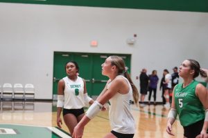 Sophomore Kiarra Bradt prepares to serve the ball.